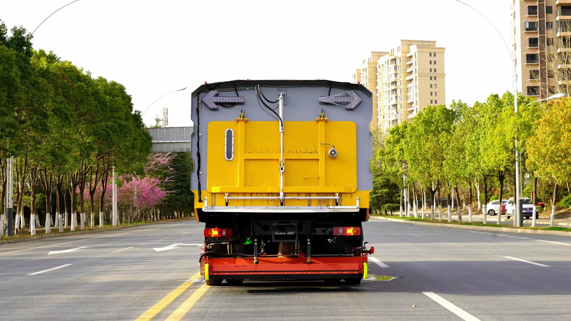 后置寬幅吸盤,吸盤內(nèi)置鋼絲滾刷與內(nèi)置高壓噴桿,帶高壓側(cè)噴桿(增加作業(yè)寬度),高壓前噴霧,作業(yè)時(shí)前部抑塵,液壓尾門,箱體液壓舉升卸料,垃圾箱自潔噴霧,20米高壓卷揚(yáng),可接上高壓**使用。