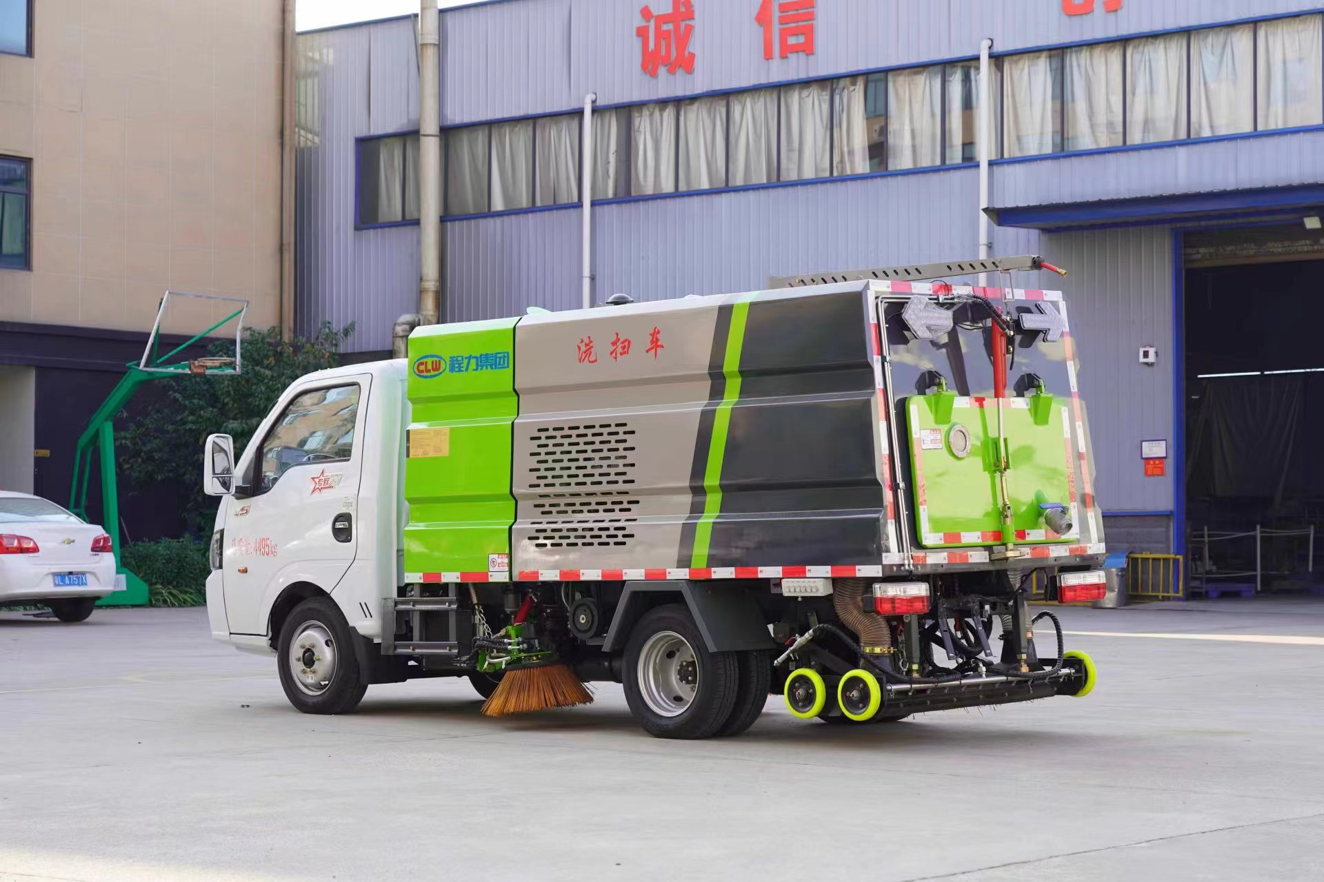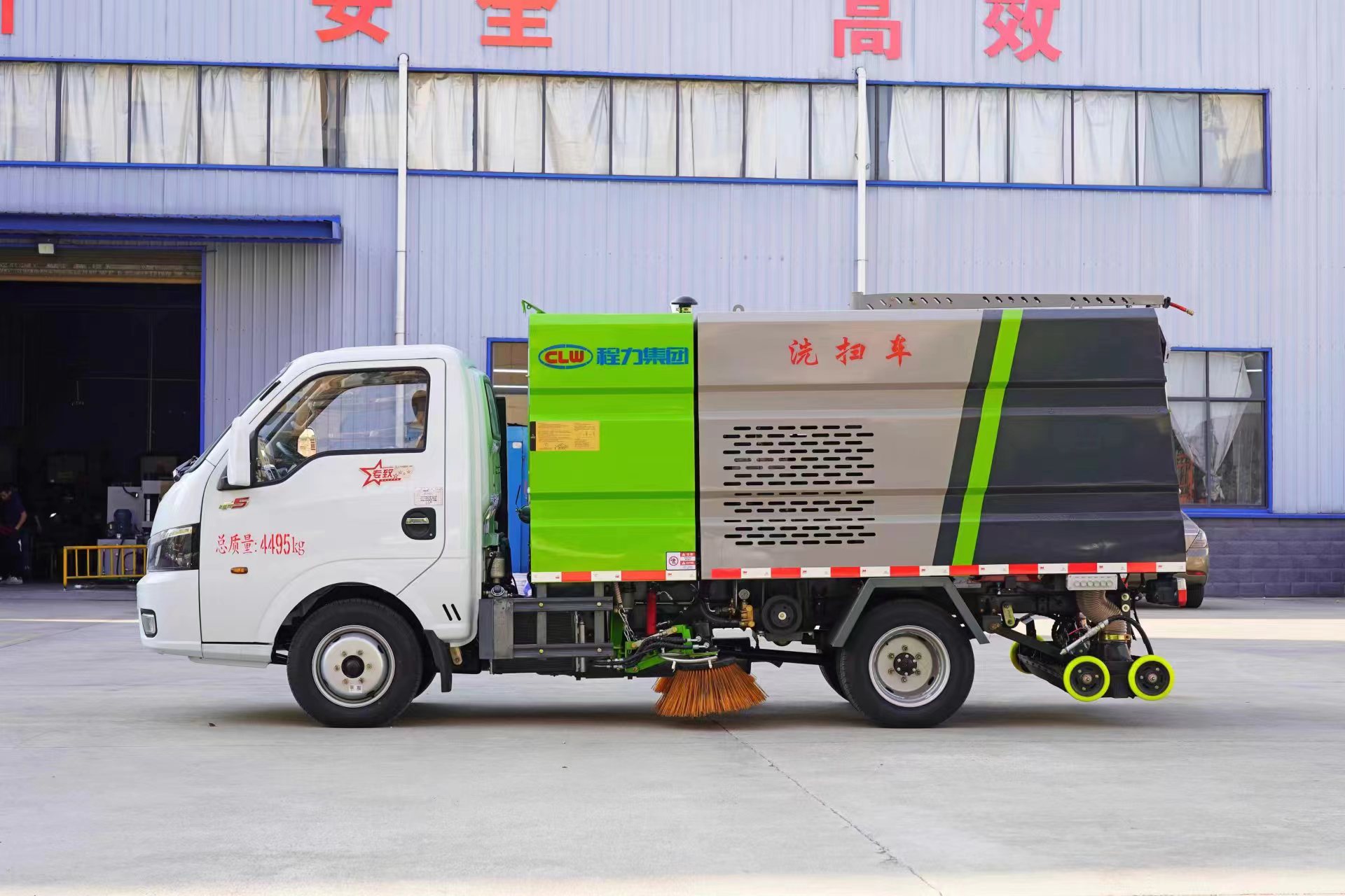 藍牌洗掃車是道路清掃車系列中的一款路面清掃保潔車輛,具有路面清洗、路面清掃路緣和路緣石立面洗刷、噴霧除塵等