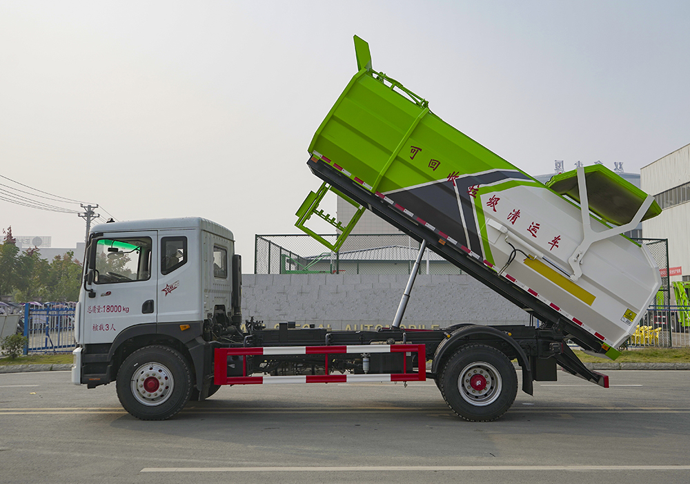 側(cè)裝對接式垃圾車的裝載容積是12立方,特點是一個車能配幾十個垃圾桶,能實現(xiàn)一臺車與多個垃圾桶聯(lián)合作業(yè),循環(huán)運輸,充分提高了車輛的運輸能力,特別適用于短途運輸,如環(huán)衛(wèi)部門對城鎮(zhèn)垃圾的清理、運輸?shù)取M瑫r,掛桶垃圾車還可以加裝其它功能,形成其它多功能掛桶垃圾車,如:掛桶壓縮式垃圾車、掛桶式泔水垃圾車、掛桶式對接垃圾車等。