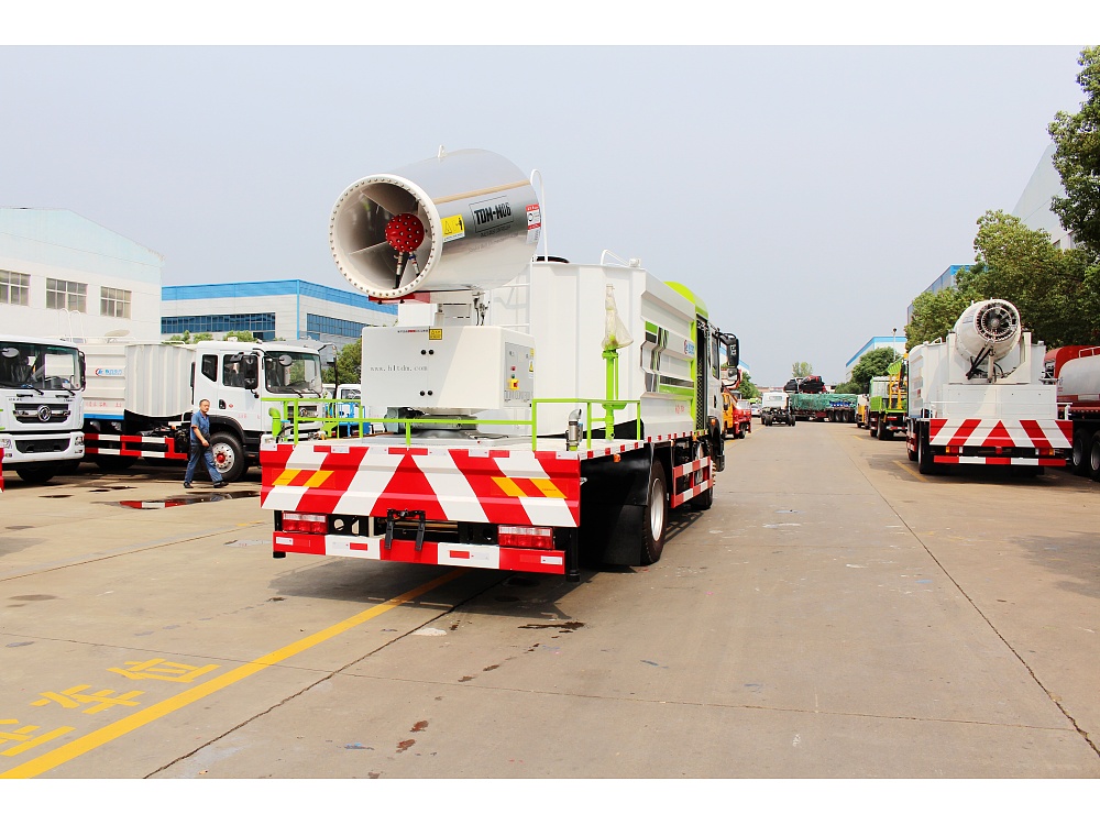 | 配置說明 | 霧炮機(jī)具有自主**技術(shù),**號為(201621305361.8 / 201630487869.3),十五年制造經(jīng)驗(yàn),產(chǎn)品全面通過湖北省及本地質(zhì)檢局檢驗(yàn)合格,可根據(jù)需求選配不同的射程規(guī)格,可遠(yuǎn)程無線遙控操作作業(yè),采用國內(nèi)外知名發(fā)電機(jī)組及風(fēng)扇電機(jī)、電控系統(tǒng)、大功率水泵。抑塵車具有灑水車的全部功能:前部沖洗路面噴灑裝置、后部扇形降塵噴灑裝置,兩側(cè)噴灑裝置,后部大工作平臺、平臺上安裝綠化灑水炮(炮噴射形狀可調(diào)),可調(diào)直沖狀、大雨、中雨、毛毛雨,可連續(xù)調(diào)節(jié),其它:自流閥及消防接頭、水管3米2根,罐體防腐處理。 | |