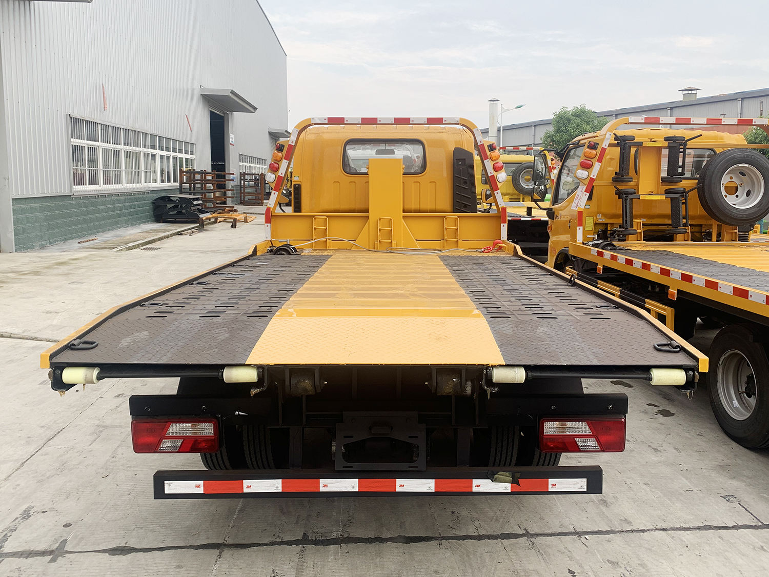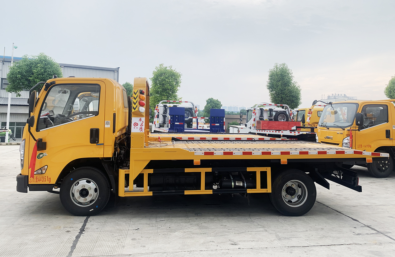 藍牌上裝配置:沖壓式平板一體板/伸縮板/翻轉板,液壓翻轉常規托舉裝置,平板可承載4噸以內重物,主板長4~4.2米,折疊、伸縮或翻轉部分1~1.35米,平板總長可達5.1~5.35米,雙側聯動操作裝置,后工作燈三只,1個40KN液壓絞盤(25米鋼絲繩)一個工具箱一個洗手箱,配兩個**小車,四根新式綁帶,鏈鉤1條,L型抱胎架一對,托叉和托叉座各一對,帶2噸后托臂。