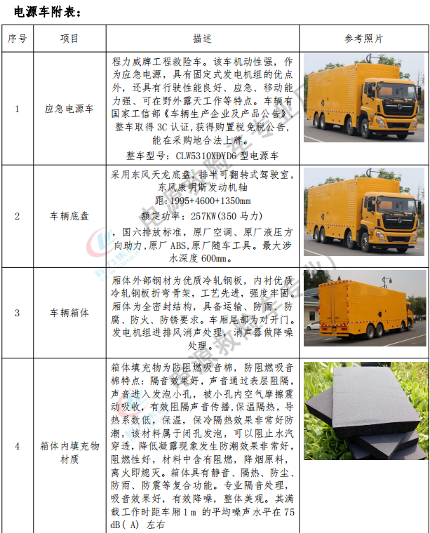 應急救援車/應急搶險車/程力威牌工程救險車。該車機動性強,真正實現了移動水泵的概念,設備可滿足緊急排水搶險的需要,并具備移動電源功能,車輛有**工信部《車輛生產企業及產品公告》,整車取得3C認證,獲得購置稅免稅公告,能在采購地合法上牌。